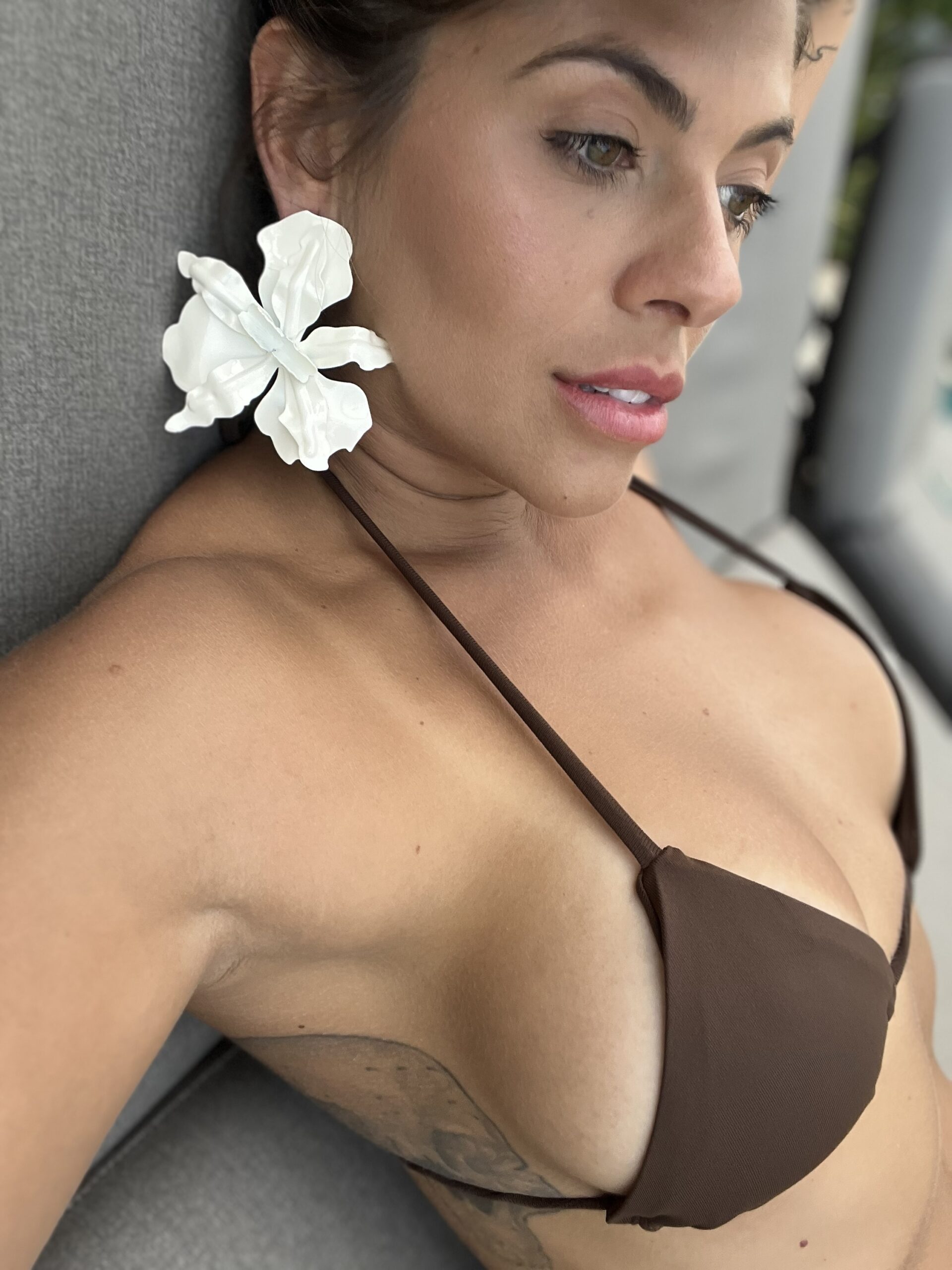 Biquíni com regulagem na calcinha semi fio e cortininha sem bojo na parte de cima.